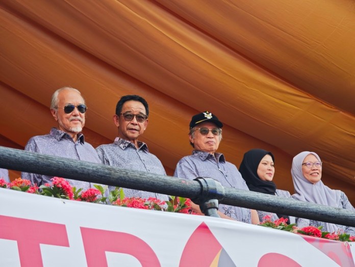 Abang Johari (centre) together with other distinguished guests observing the Sarawak Regatta upon arrival at Kuching Waterfront on Oct 24, 2025.