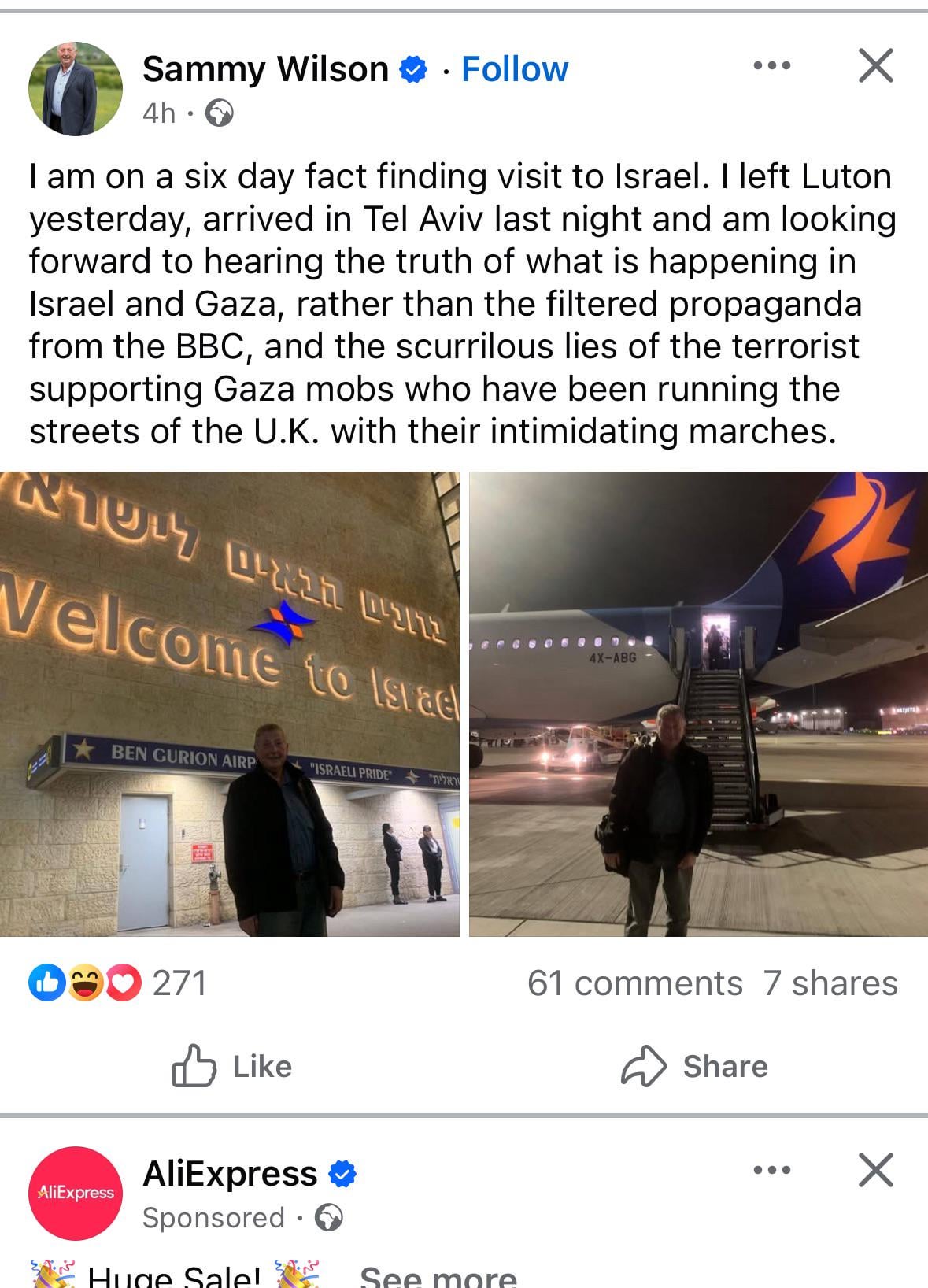 Seems to be going over there with a very open mind alright. Might as well strap an advertising board to his arse saying “I’ll say whatever Israel wants for a few pounds”