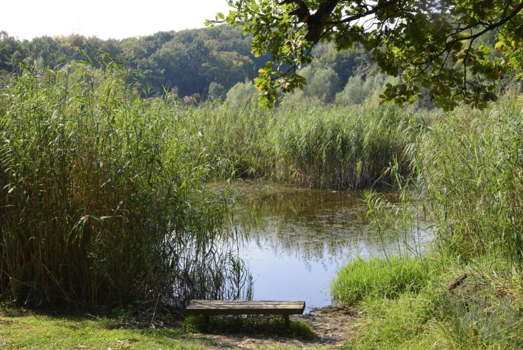 It is surrounded to the east and northeast by dense forests made up of oak, common hornbeam, mountain beech, holm oak and black ash. On the west and south lie pastures, old orchards and fertile, arable land, which testify to the long-term human presence in the area around the lake itself. Its edges are overgrown with reeds and rushes.