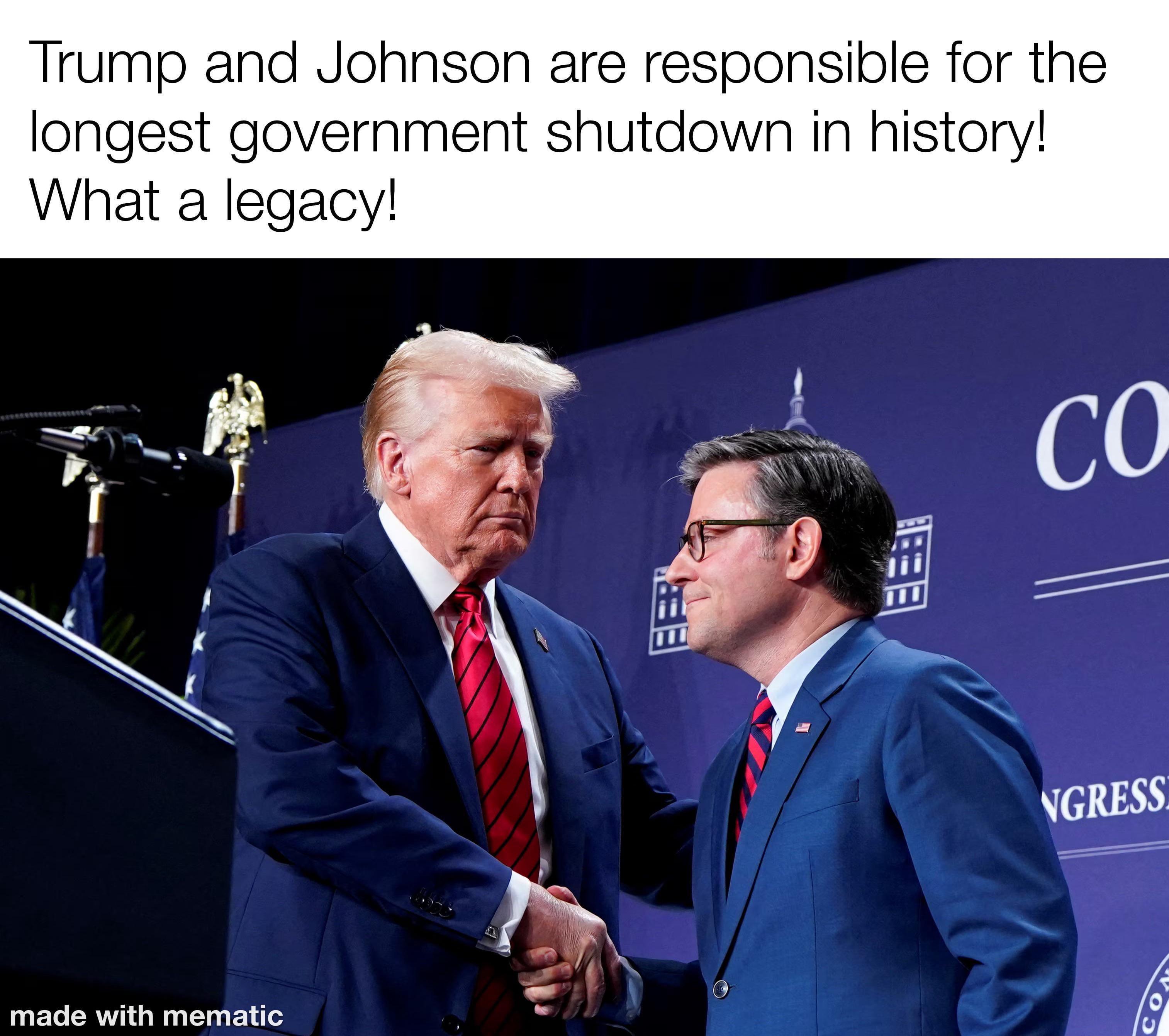 >Trump and Johnson are responsible for the longest government shutdown in history!