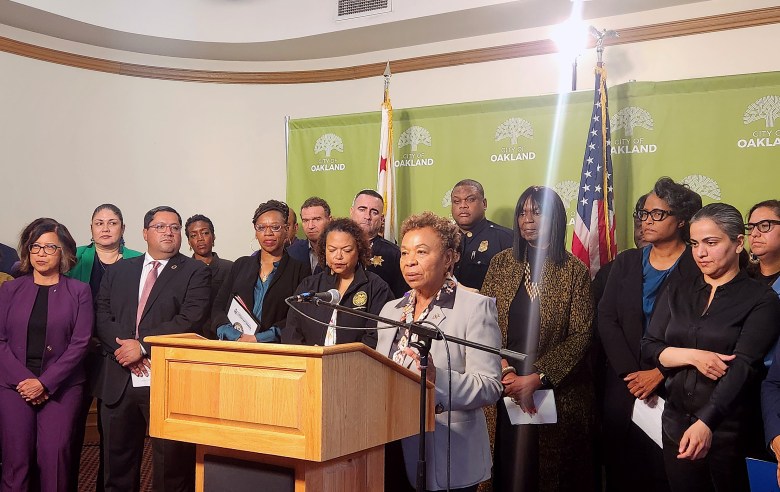 Mayor Barbara Lee speaks during a press conference at City Hall in Oakland, Calif., on Thursday, Oct. 23, 2025. A unified coalition of federal, state, and local officials, law enforcement, faith leaders, legal advocates, and community partners gathered to address the deployment of federal immigration agents to the Bay Area. (Kiley Russell/Bay City News)