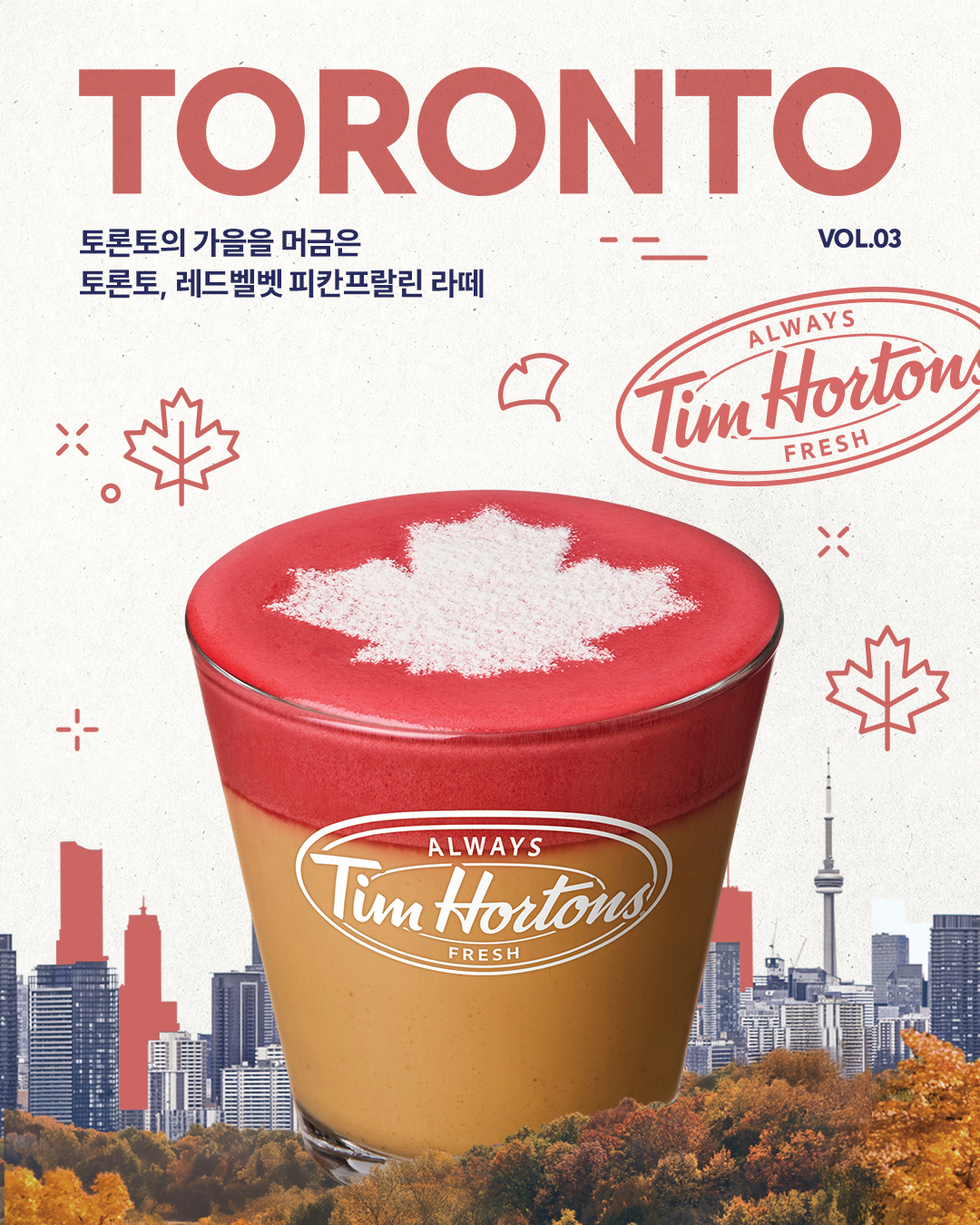 Photo credits: Tim Hortons KoreaThey’ve also launched a city-themed campaign featuring Toronto, complete with a limited-edition Red Velvet Peanut Praline Latte.