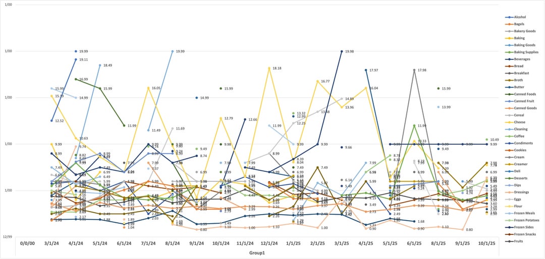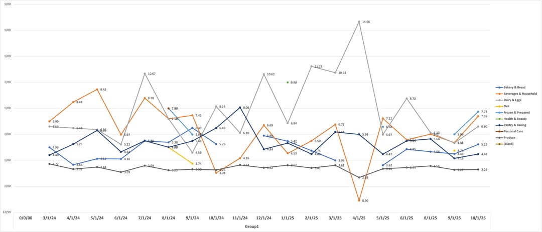 Notably, September 2025 was the only point in time where almost all categories increased all at the same time. Does anyone have any idea what would have driven this across the board increase on all goods all at once?