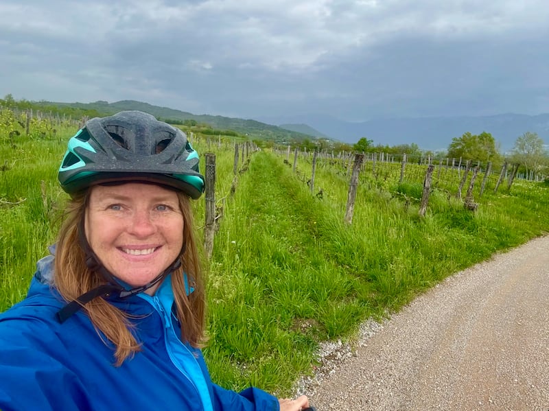 Lorena Knapp stops for a selfie on her self-guided bike tour of Slovenia. She said the bikes are in good shape and prepared for the gravel roads through the vineyards. (Photo Lorena Knapp)