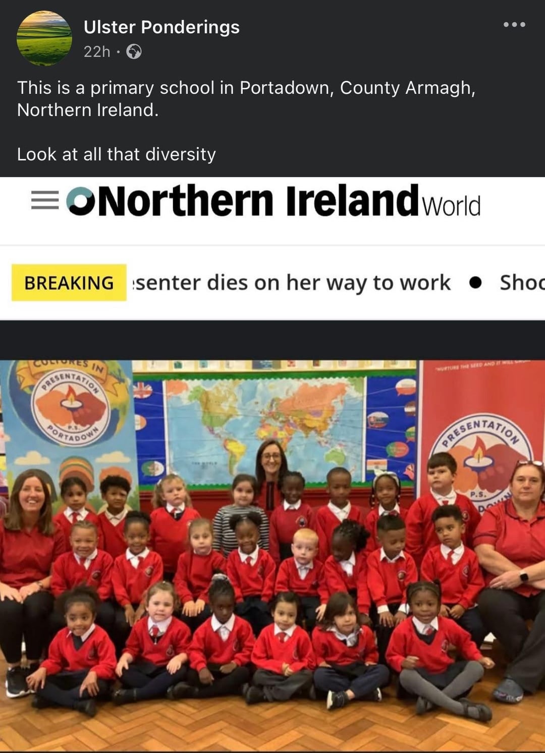 (To whoever replied and then deleted it, everyone in my class was from NI, within 20 miles of the school, bar one person from GB who got made fun of for that. 99% of people were from prod backgrounds. The other 1% were Catholic. So no, in my case there wasn’t diversity in backgrounds!)