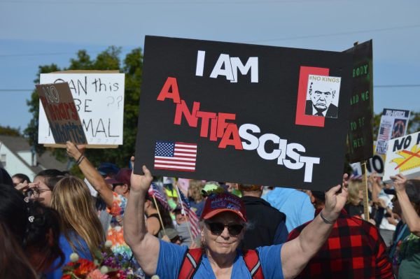 Demonstrators at the “No Kings” protest. Photo captured by Bella Walker.