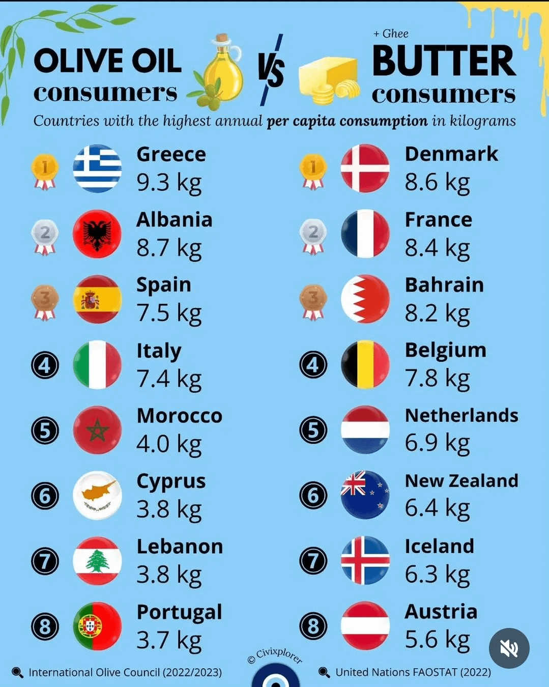 Surprised to see such a big difference between Greek and Cyprus. Guess all those Russian oligarchs don’t eat much olive oil.