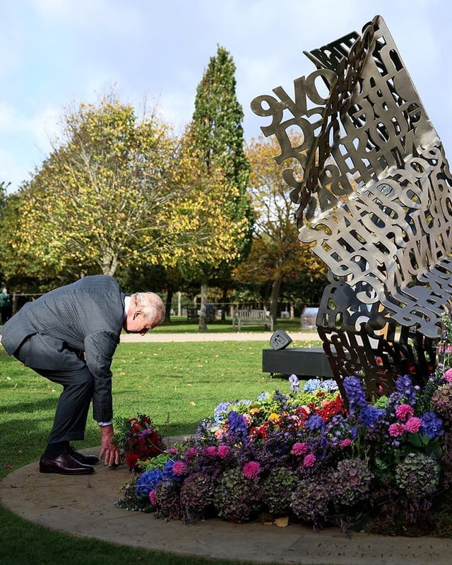 Cheers to Great Britain for having a memorial like this and good on Charles for bringing attention to it. The rainbow-like pattern of the flowers is beautiful.
