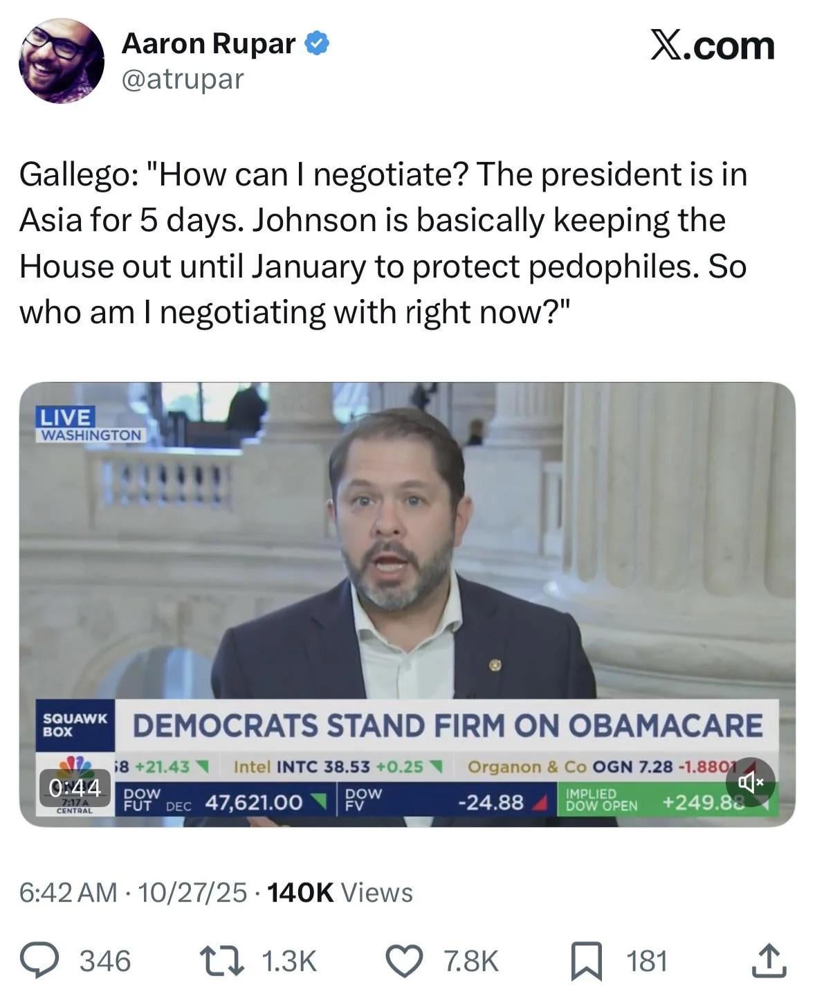 Gallego is one of the Senators personally responsible for ICE starting a war in your streets. Was one of the few Democrats that voted to pass the Laken Riley Act that granted ICE and federal immigration officers unprecented power to detain, arrest, and deport people with no judicial oversight and no prior arrests or charges. Fuck this guy.