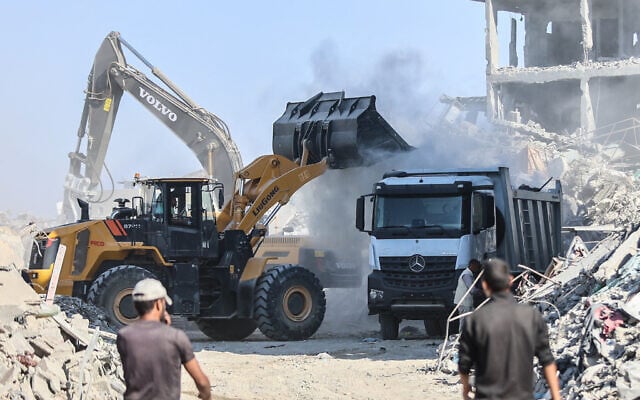 Heavy machinery amid a purported operation to recover the body of a hostage in the al-Tuffah neighborhood of Gaza City on October 27, 2025 (Omar AL-QATTAA / AFP)