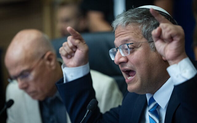 National Security Minister Itamar Ben Gvir attends a National Security Committee meeting at the Knesset in Jerusalem on October 27, 2025. (Yonatan Sindel/Flash90)