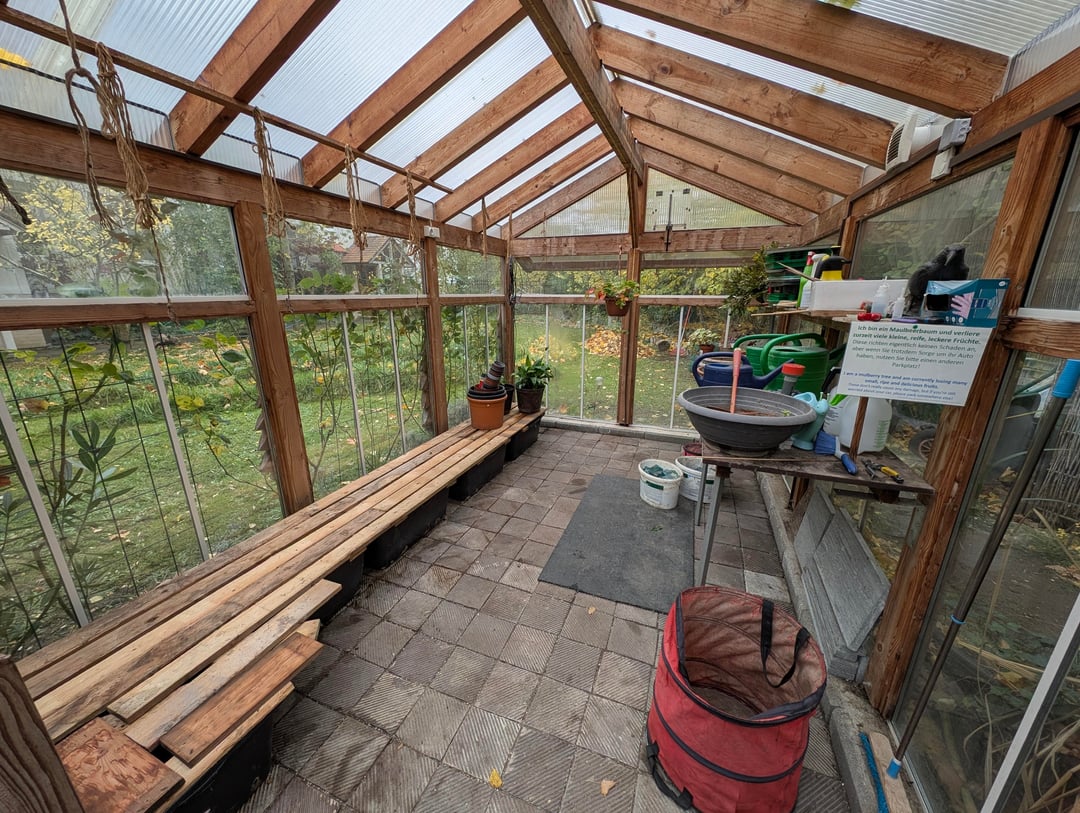 Bisher habe ich einen Frostwächter darin, der es auch frostfrei hält. Aber durch die vielen Pflanzen, die darin überwintern, habe ich ein Schimmelproblem.