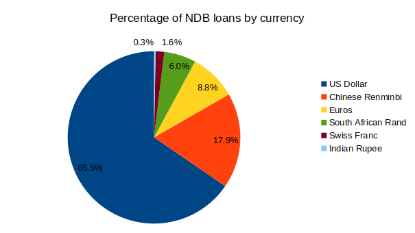 The answer is no. The NDB is not becoming independent from financial markets and the dollar, despite some claims. 66% of its outstanding borrowings are in US dollars and 1% in euros and they are bonds sold on financial markets.
