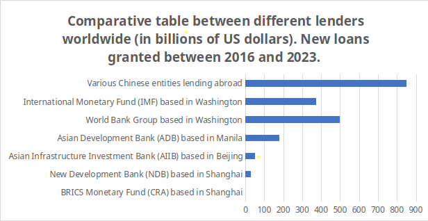Comparative table between different lenders worldwide (in US dollars). New loans granted between 2016 and 2023.