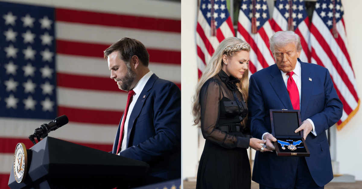 Vice President JD Vance (from VP Vance on Facebook) and Erika Kirk with President Donald Trump (from the White House on Facebook)