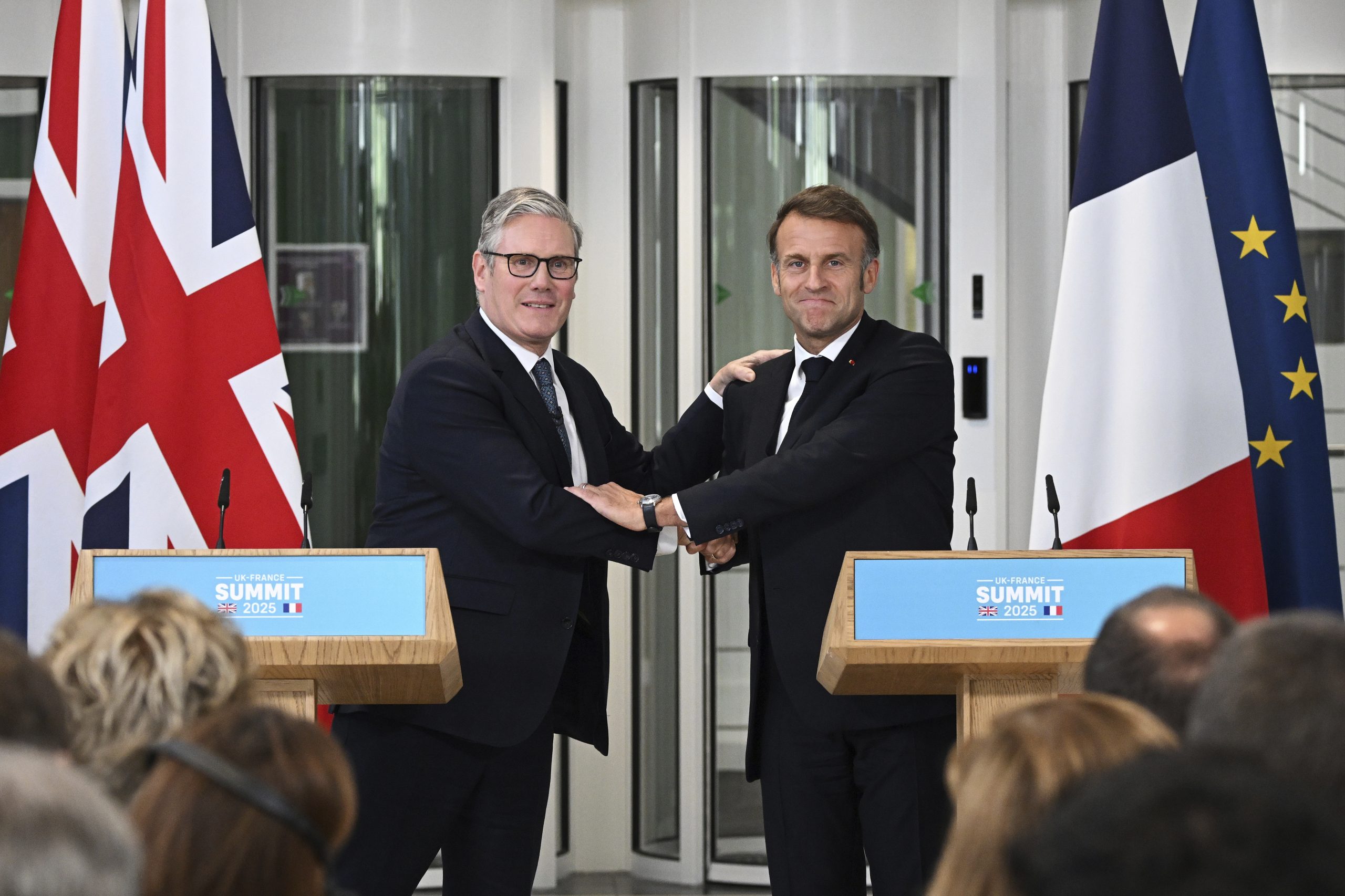 British Prime Minister Keir Starmer and French President Emmanuel Macron hold a joint press conference in London, July. Image credit: AP
