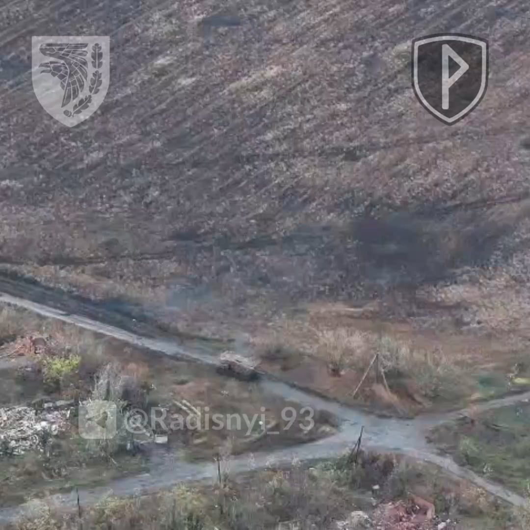 Complementary footage of the failed Russian armor column attack near Dobropil. Armored vehicle are hunted down while retreating. The dismounts are meticulously hunted by FPVs and drone drops in a nearby forest, a ditch, and a field.