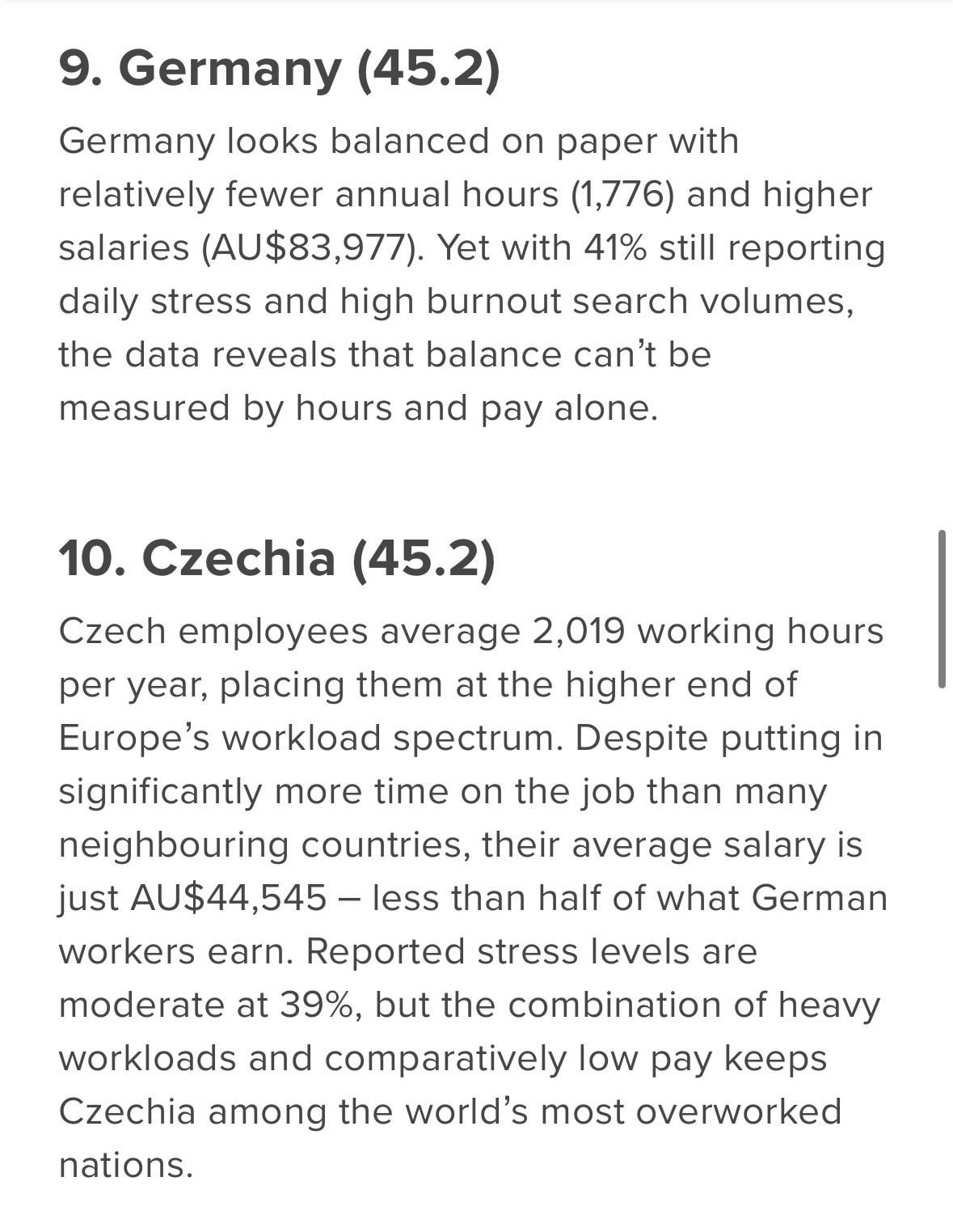 Vychází z mezinárodního srovnání Australské pojišťovny: https://www.iselect.com.au/health-insurance/insights/most-overworked-countries/