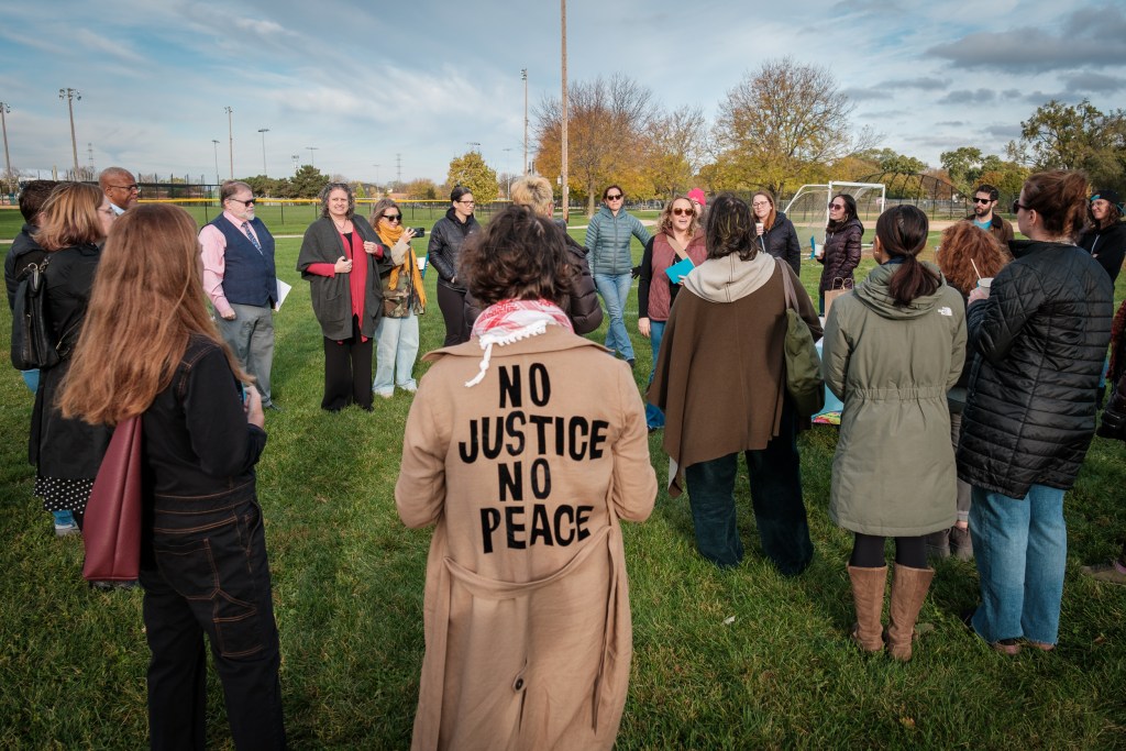 Evanston business, nonprofit and faith leaders gather in solidarity at James Park. Credit: Joerg Metzner