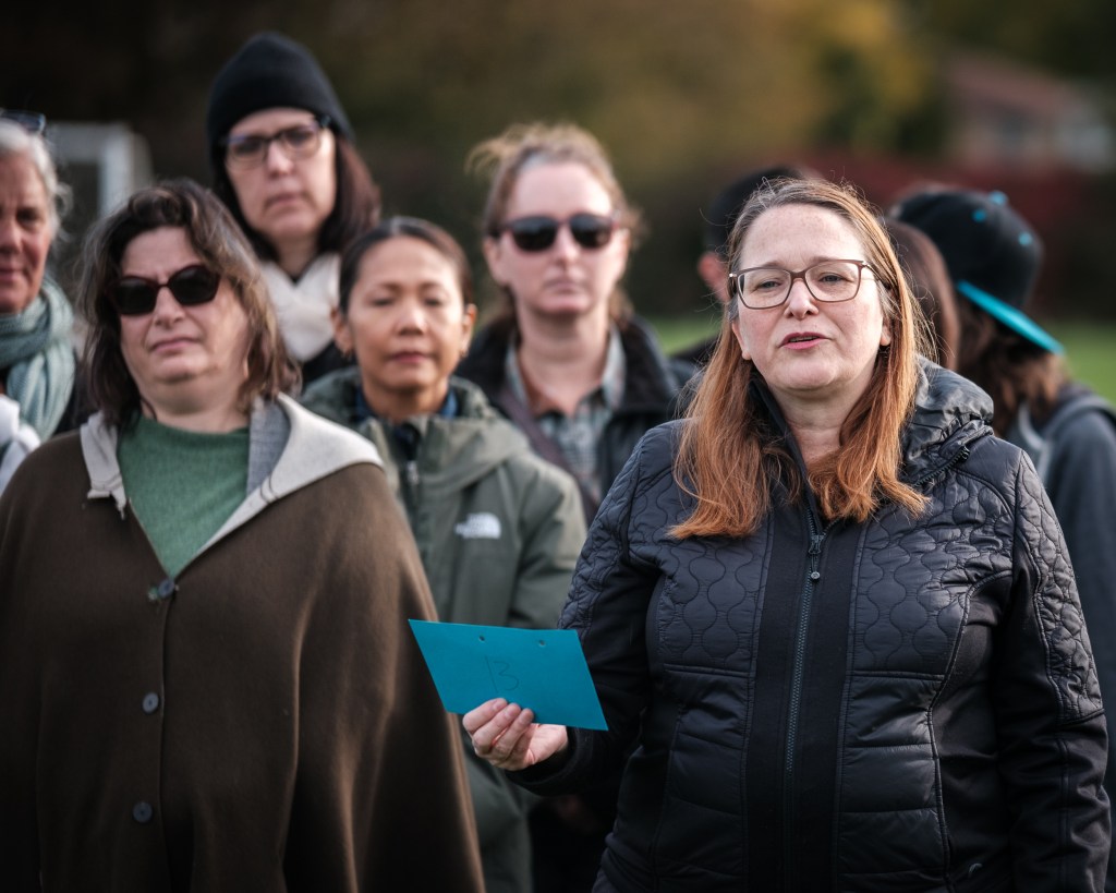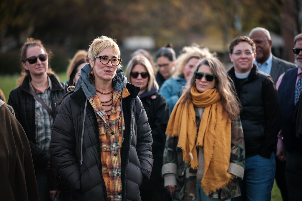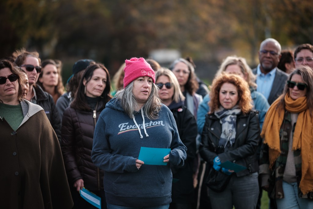 Jennifer Lieb, founder of Evanston Lands, said she wanted to help raise awareness. “I’m using my privilege and my ability to be in public and not have to hide,” she said. “I’m horrified by what’s happening in the government, and have to do anything I can to help our neighbors who are under threat and feel hidden right now.”