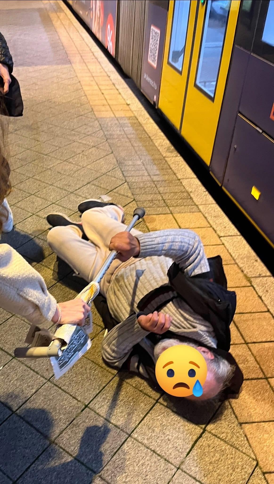 A polgárőrök és a mentősök felrángatták a földről a bácsit, aki fájdalmában jajgatott, feltették a villamosra, leültették, majd otthagyták.