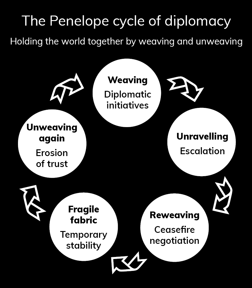 In Penelope’s patience we glimpse the quiet power of diplomacy itself: not the triumph of resolution, but the art of keeping the world from unravelling. The courage not to win, but to hold the thread when everything else comes undone.