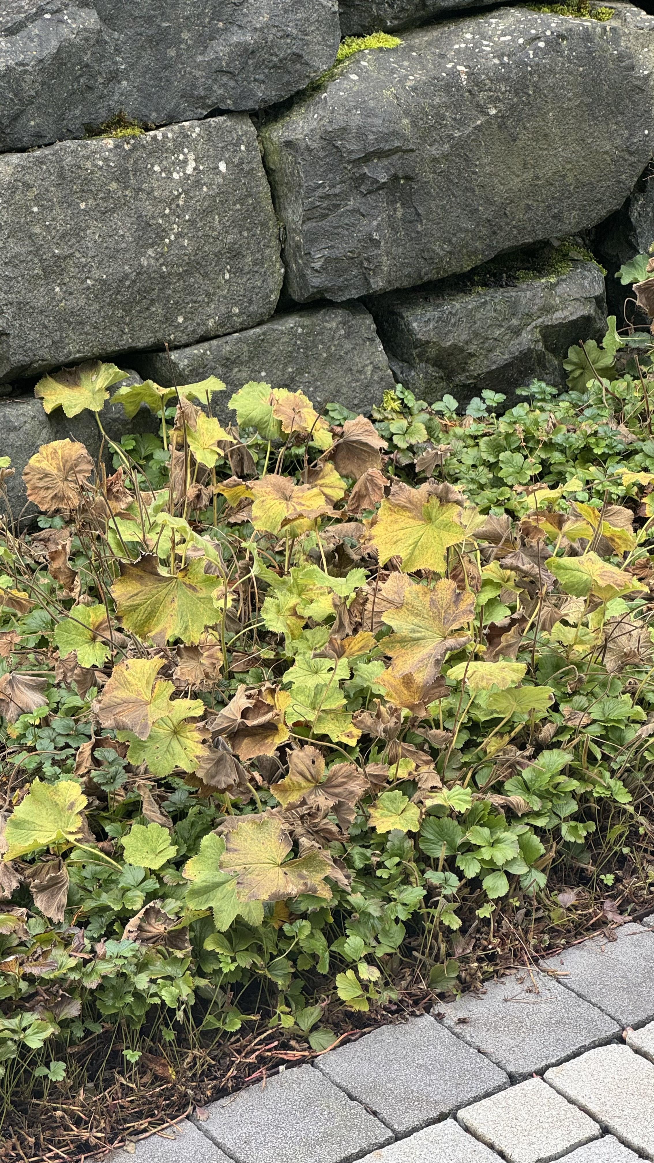 die Frage bezieht sich nicht auf die Bodendecker sondern die großen Blätter, die da raus wachsen.