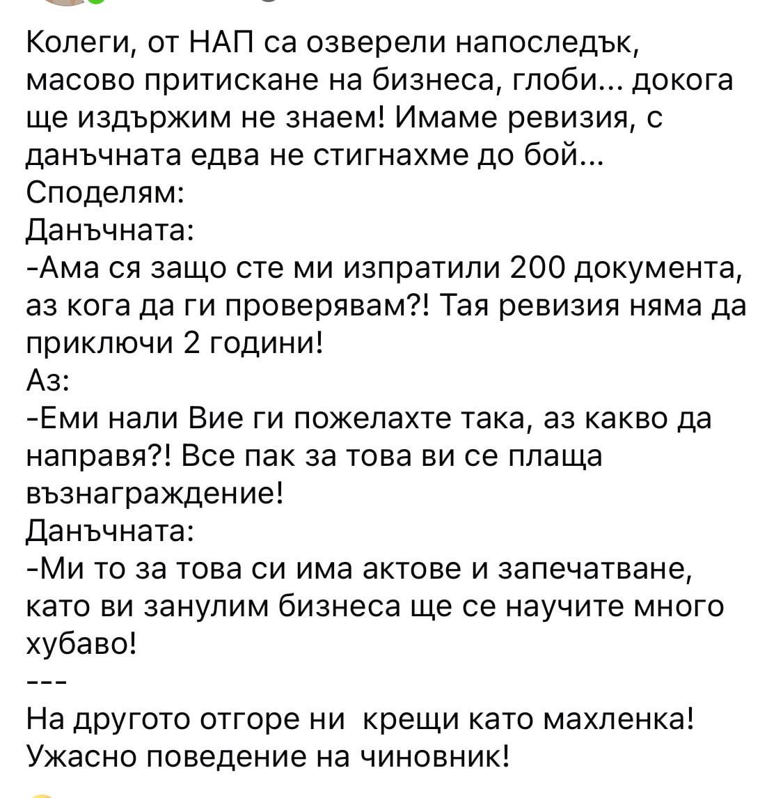 3. Имайте малко милост, НАП отписа близо 20 млрд лв несъбираеми задължения наскоро. Това означава, че те отскоро са започнали изобщо да работят, неопитни са, нищо че имат по 20-30 г стаж зад гърба си.. просто друго е било времето.. Като при хелоуин – пакост или плащаш.