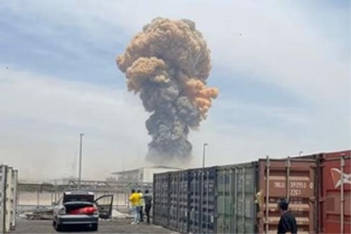 The explosion at Bandar Abbas Commercial Port on April 26 (Tasnim News Agency – CC by 4.0)