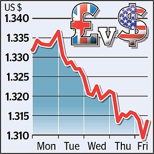 Matthew Ryan, at global financial services firm Ebury, said: ‘A combination of Budget jitters and rising bets in favour of a December rate cut from the Bank of England have kept sterling firmly on the back foot so far this week.’