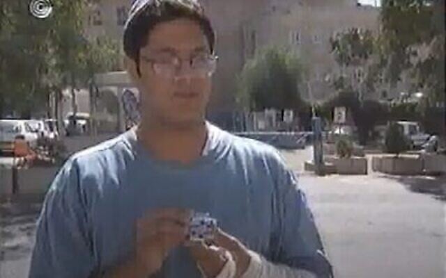 Itamar Ben Gvir seen holding up an ornament from prime minister Yitzhak Rabin’s car, in an October 1995 interview. (Screen capture: YouTube/IBA)