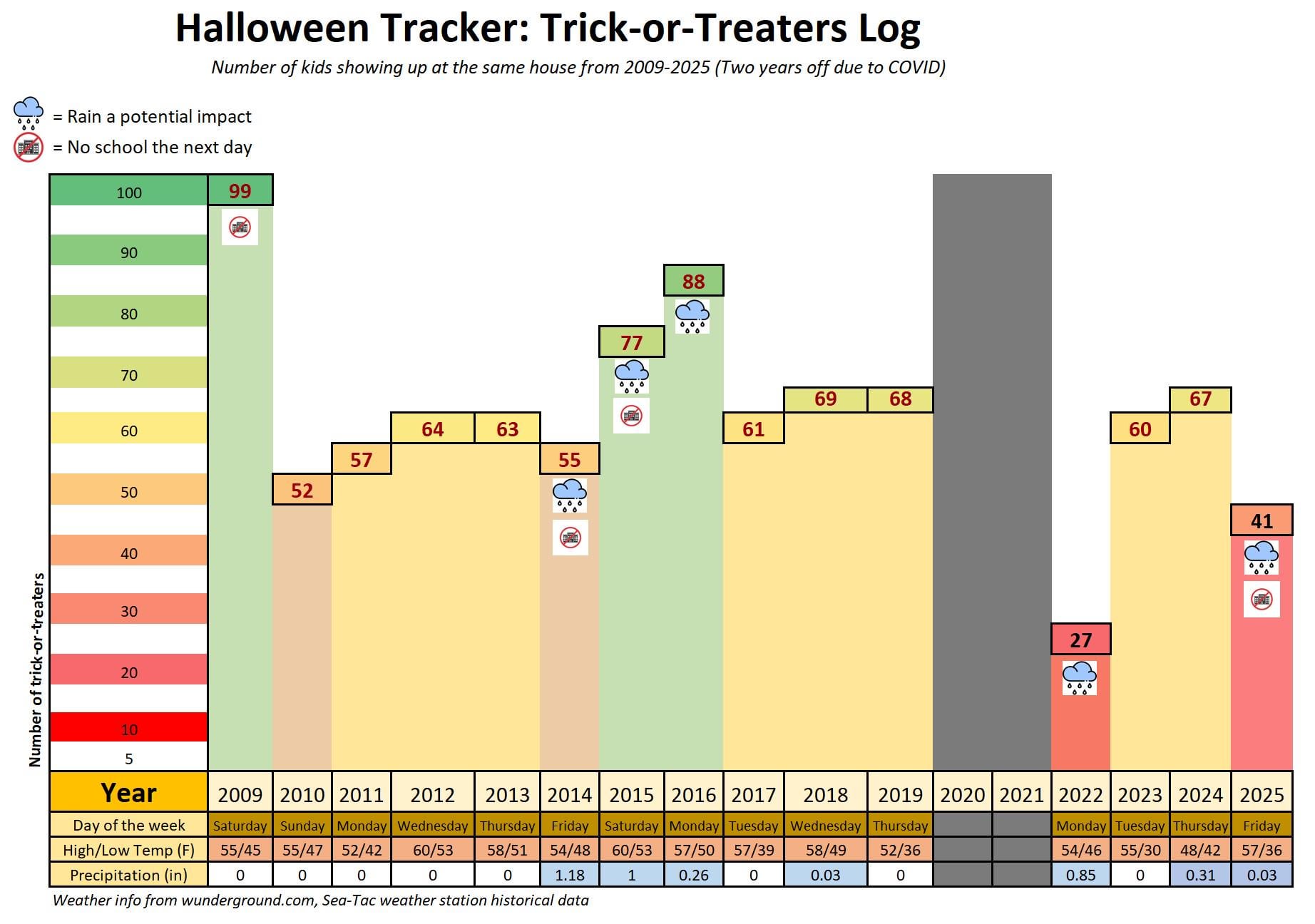 I’ve been tracking the number of kids to my door since moving here in 2016. Zero. Still Zero.