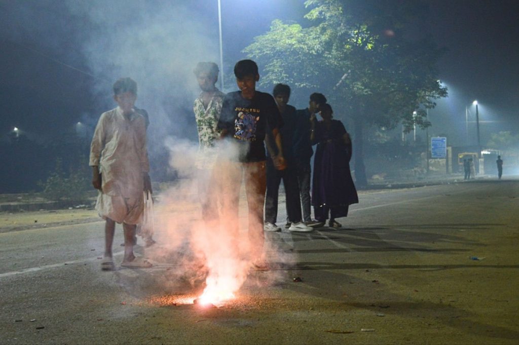 Children burst crackers on Delhi’s streets. Photo: Aditya Sharma.