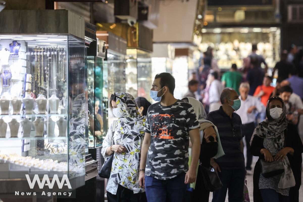 Iranians look at the window of a gold shop in Tehran Bazaar, Iran August 16, 2022. Majid Asgaripour/WANA (West Asia News Agency)