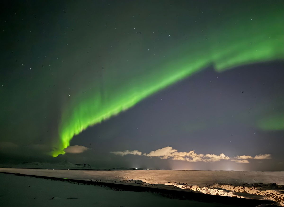 I was aware that the Northern Lights are much brighter through a camera lens than through the naked eye. However, I wasn’t prepared for just how big the contrast is. Take our “viewing” the last night, at The Retreat at Blue Lagoon.