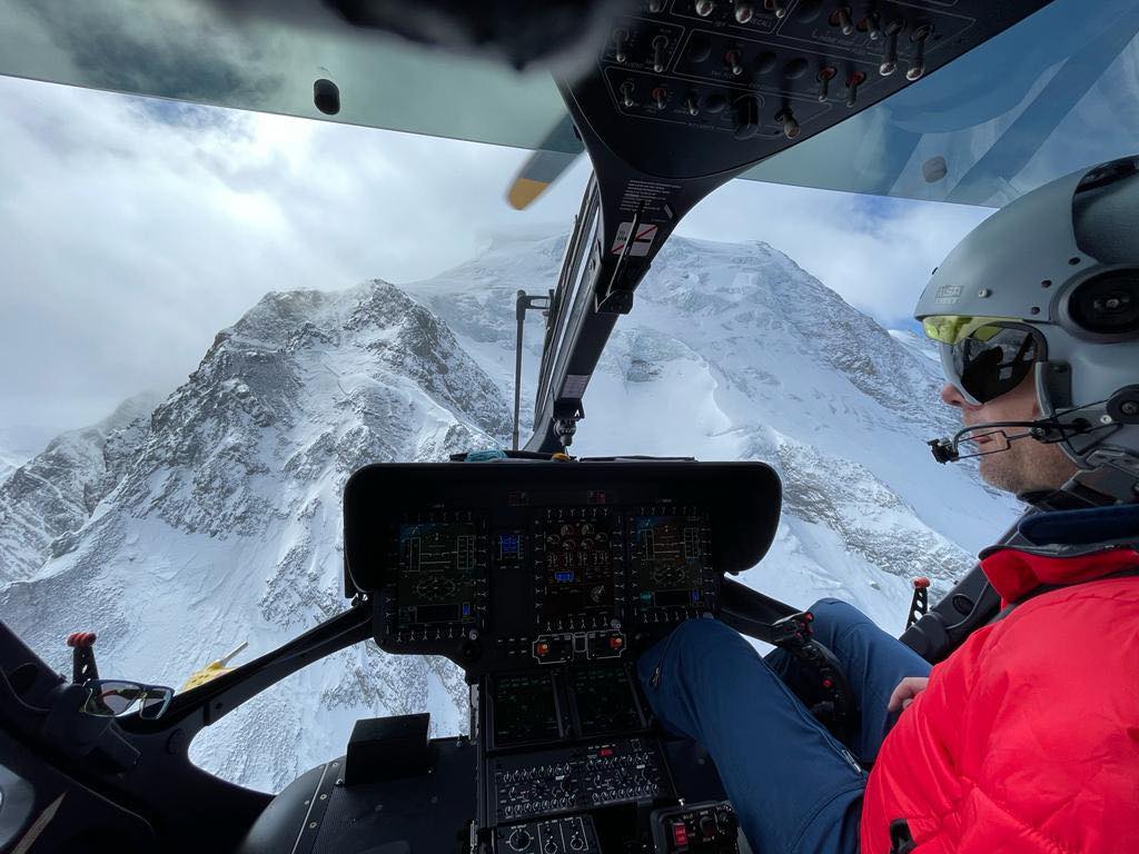 The Pelikan 3 helicopter aided in the search for the two missing people into nightfall. | Image: Bergrettung Sulden