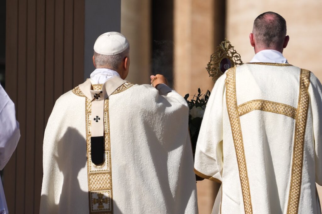 Pope Leo XIV incenses a relic of St. John Henry Newman during the Mass concluding the Jubilee of the World of Education in St. Peter’s Square at the Vatican Nov. 1, 2025. During the liturgy, the pope formally declared the 19th-century English cardinal and theologian a doctor of the church. (CNS photo/Lola Gomez)