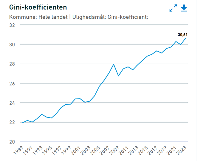 > I danmark har vi haft en næsten konstant stigende ulighed over de sidste 30 år.