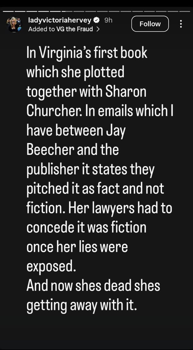 Posting that picture of Virginia injured is repulsive and tells me everything I need to know about Victoria Hervey.