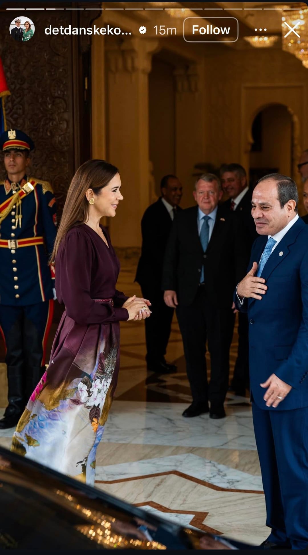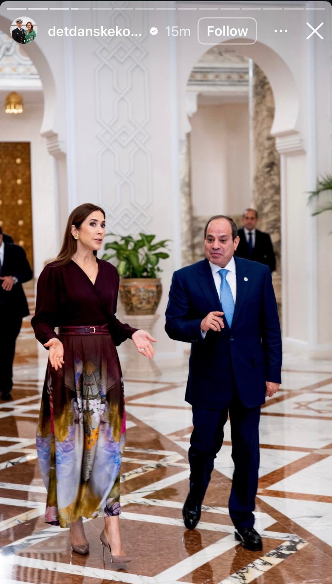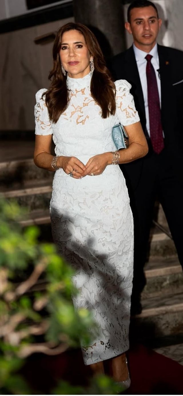 Danish Royal Family Insta account posts photo dump from Egypt! Mary meets Sisi, tours the museum in giant pants; we get a closer look at the gorgeous white lace Natura outfit she wore to the gala