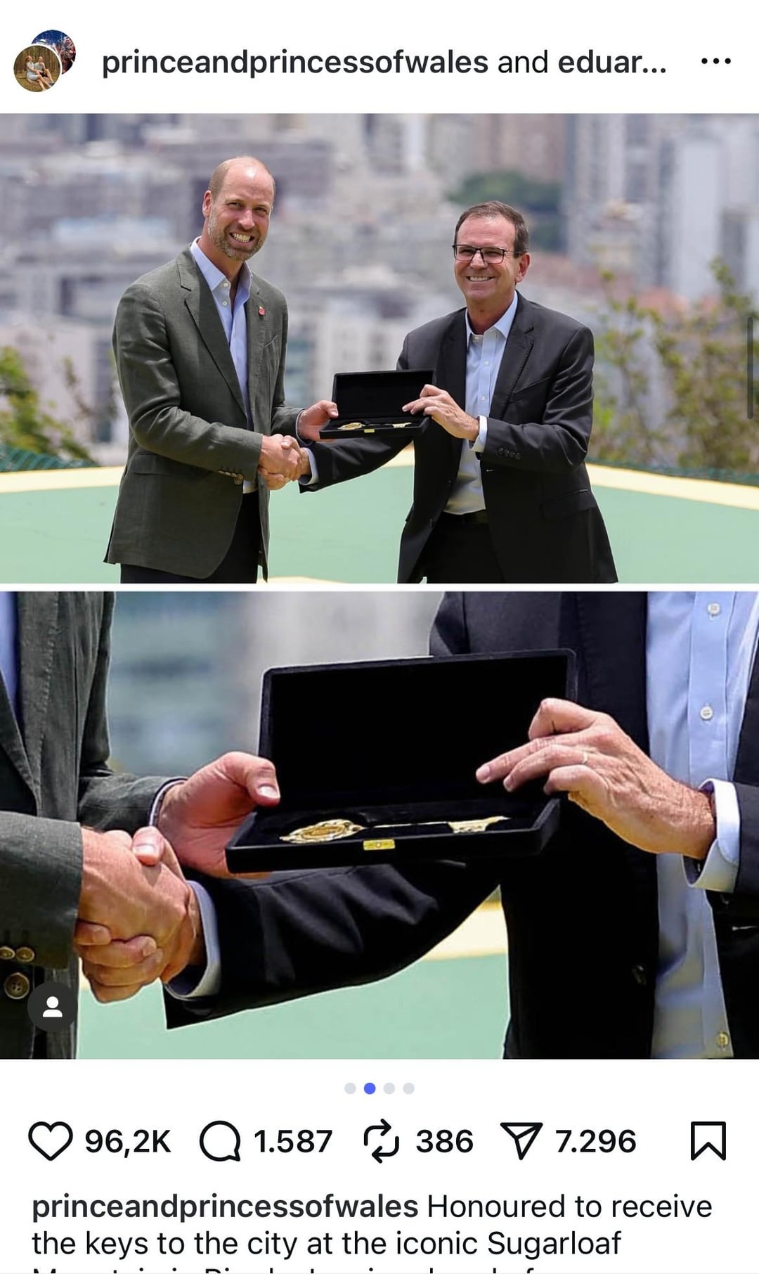 Prince William receives key to city, plays both football and beach volleyball on day 1 of Rio visit for Earthshot 2025