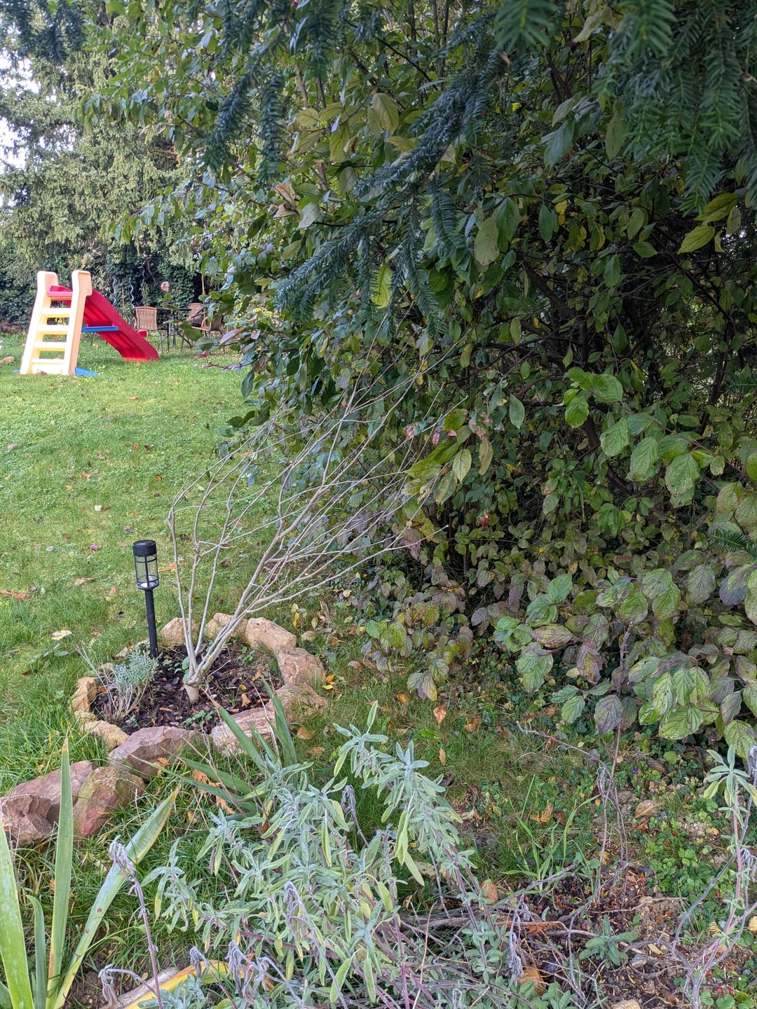 Habe den dieses Jahr versetzt und absichtlich so eingesetzt, dass die Zweige nach hinten ragen, da ich gehofft habe, dass er sich so aufrichtet.