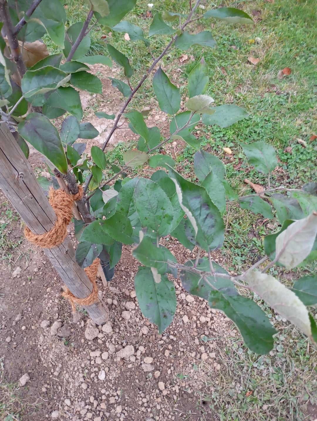 Wenn das der einzige Apfelbaum im Umkreis ist, könntest du das abfallende Laub entfernen.