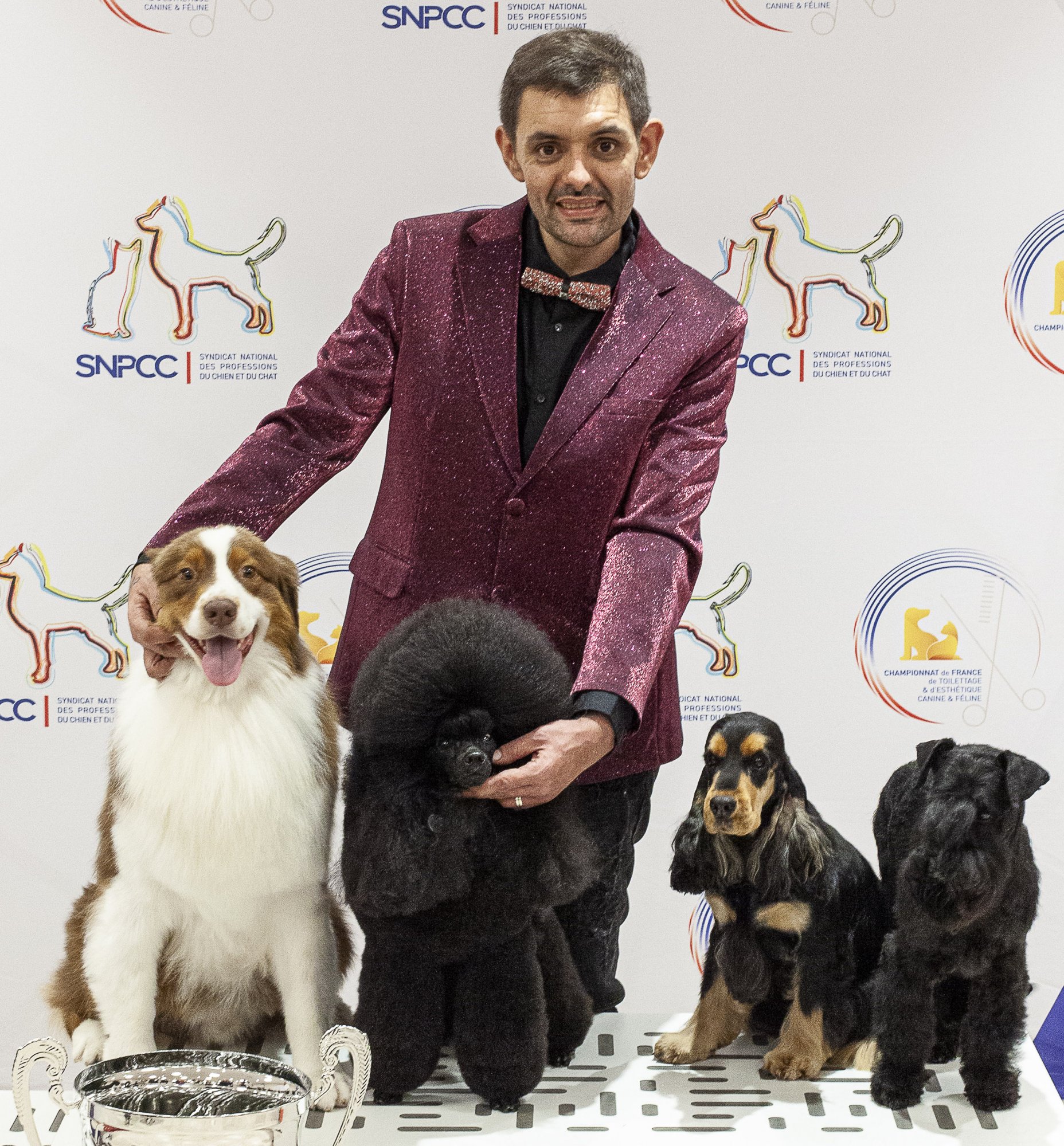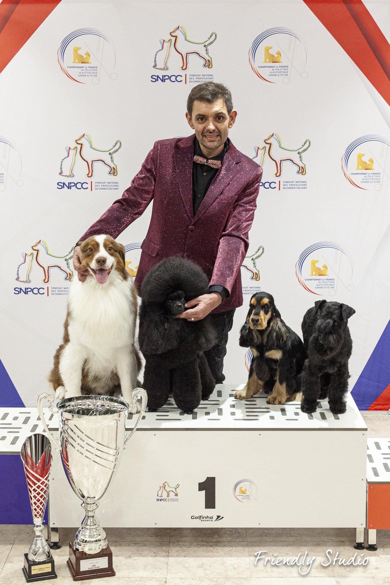 2ᵉ place en catégorie “Autres poils” (Berger Australien)1ʳᵉ place en catégorie “Caniche”Titre suprême : Meilleur Toiletteur de France 2025
