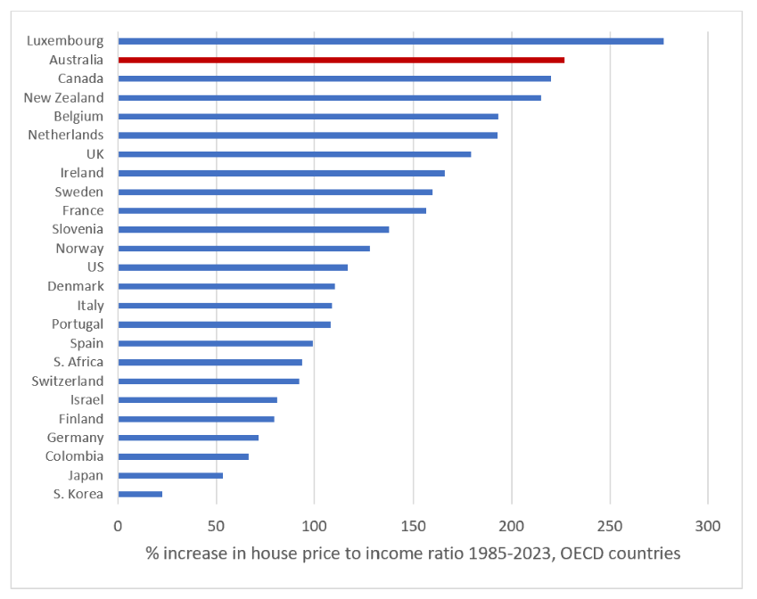 “Since 1985, Australia’s house price to income ratio has grown by 226%; ahead of Canada (220%), the UK (180%) and the USA (117%).