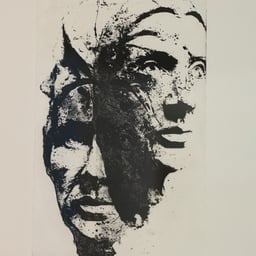 Die Gravuren wirken wie archäologische Fundstücke der Psyche. Die schwarze Tinte ist nicht aufgetragen, sondern eingebrannt. Dieser Prozess vereint Hitze, Druck und Zeit und es entstehen Bilder, die zwischen Figur und Abstraktion schweben. Die Gesichter sind nicht dargestellt, sondern im Begriff, sich zu zeigen oder zu verschwinden. Sie erzählen nicht von Menschen, sondern von dem, was von ihnen bleibt: ein Abdruck, ein Echo, ein Flüstern.
