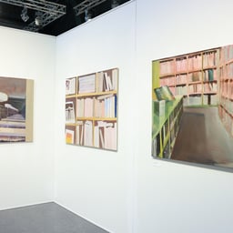 Drei Ölgemälde, ein wiederkehrendes Motiv: die Bibliothek als Ort des Wissens und des Verschwindens. In ihrer Serie „Why Books?“ verwandelt die belgische Malerin Leen van Bogaert, geboren 1959 in Gent, den scheinbar nüchternen Raum der Bücherregale in eine poetische Reflexion über Erinnerung und Erkenntnis.
