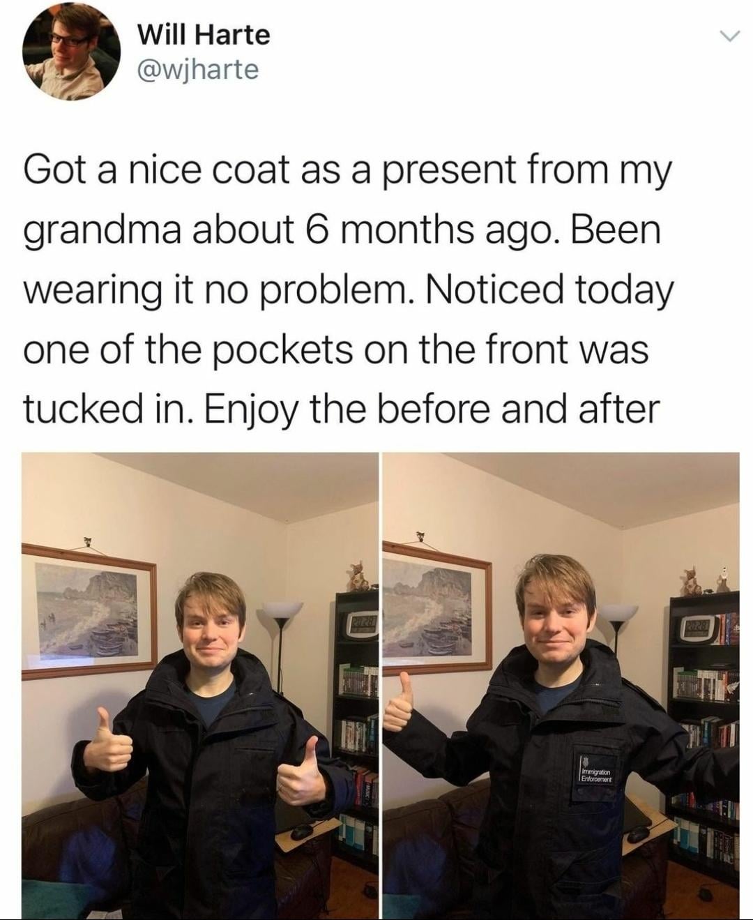 My first thought was nana is fucking the immigration officer and he left it like a hoodie at her place I think imma just walk myself to hell now for the impure thought