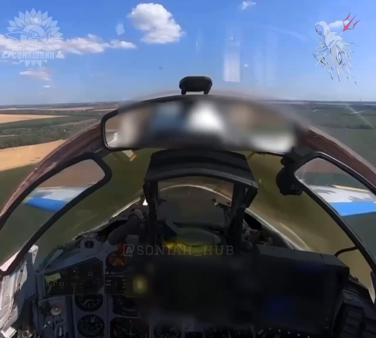 Cockpit view of a Ukrainian MiG-29 fighter jet dropping French AASM Hammer guided bombs on Russian positions. Donetsk Oblast.