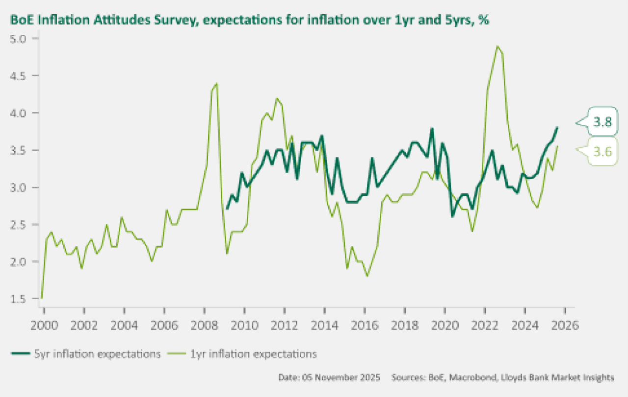 On balance Lloyds Bank expects the Governor at least to come down on the side of no change this time in a nod to the hawks’ inflation persistence concerns with the hope of keeping them onside to support further Bank Rate reductions in 2026 when CPI ought to have come off its recent peak.